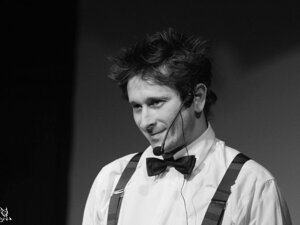 He graduated at the Teatro Nuovo in Turin and cooperates with many national realities of improv (is part of the cast of B. L. U. E. the improvised musical). He use to work as a trainer of many companies.